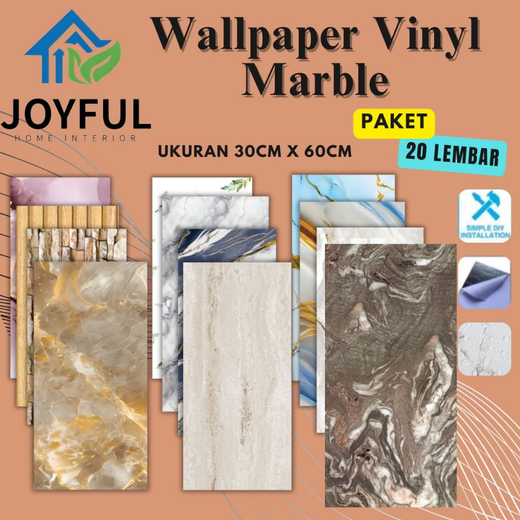 Wallpaper Dinding Vinyl Marble 30 x 60 cm High Quality Paket 20 Lembar
