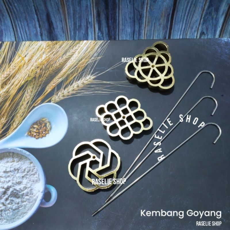 Set 3pcs Cetakan Kue Kembang Goyang Loyang Kue Seroja Bahan Kuningan anti lengket