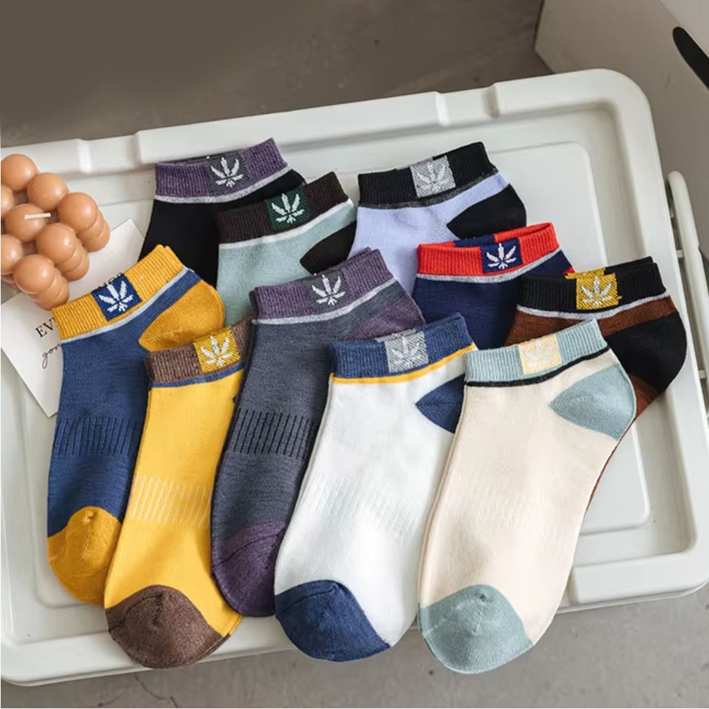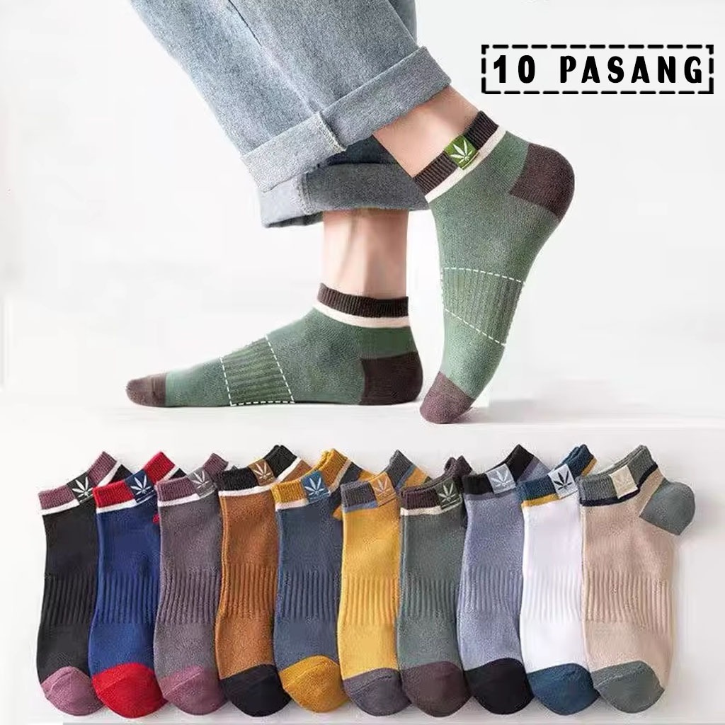 Paket 10 Pasang Kaus Kaki Pendek Pria Wanita Ukuran Kaki 36-42 Warna Blok Bersantai Dan Olahraga