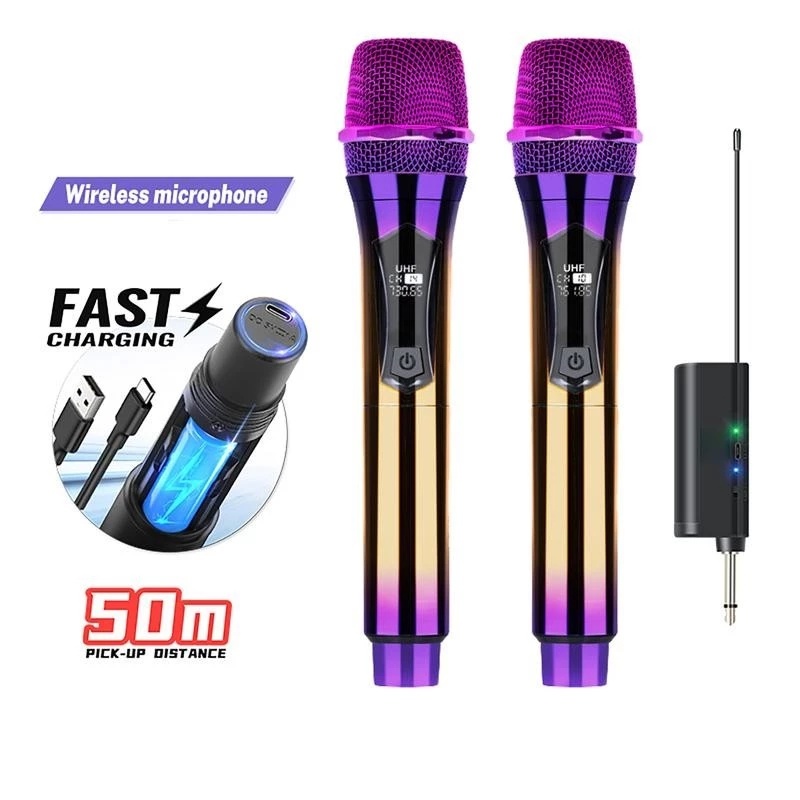 Mikrofon Karaoke Ganda/Mikrofon Nirkabel/Mikrofon Dinamis Nirkabel Murah Yang Dapat Diisi Ulang/Mikrofon Karaoke Genggam