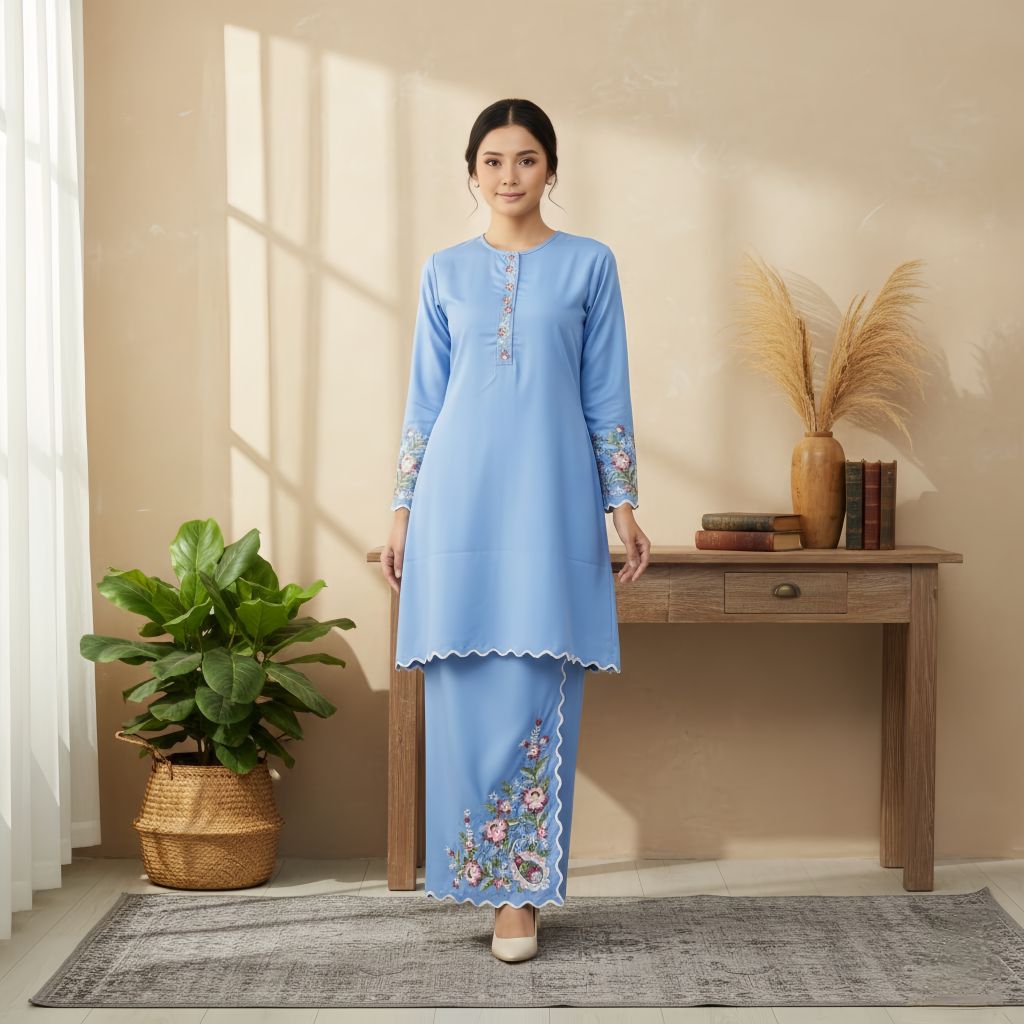 Set Rok Melayu Rayana Terbaru Stelan Rok Bordir Premium Baju Kurung Melayu Katun Toyobo Premium