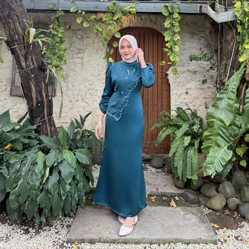 Aleena Dress Premium Viral Termurah Gamis Muslim Lebaran Pesta Kondangan Satin Silk Terbaru 2026