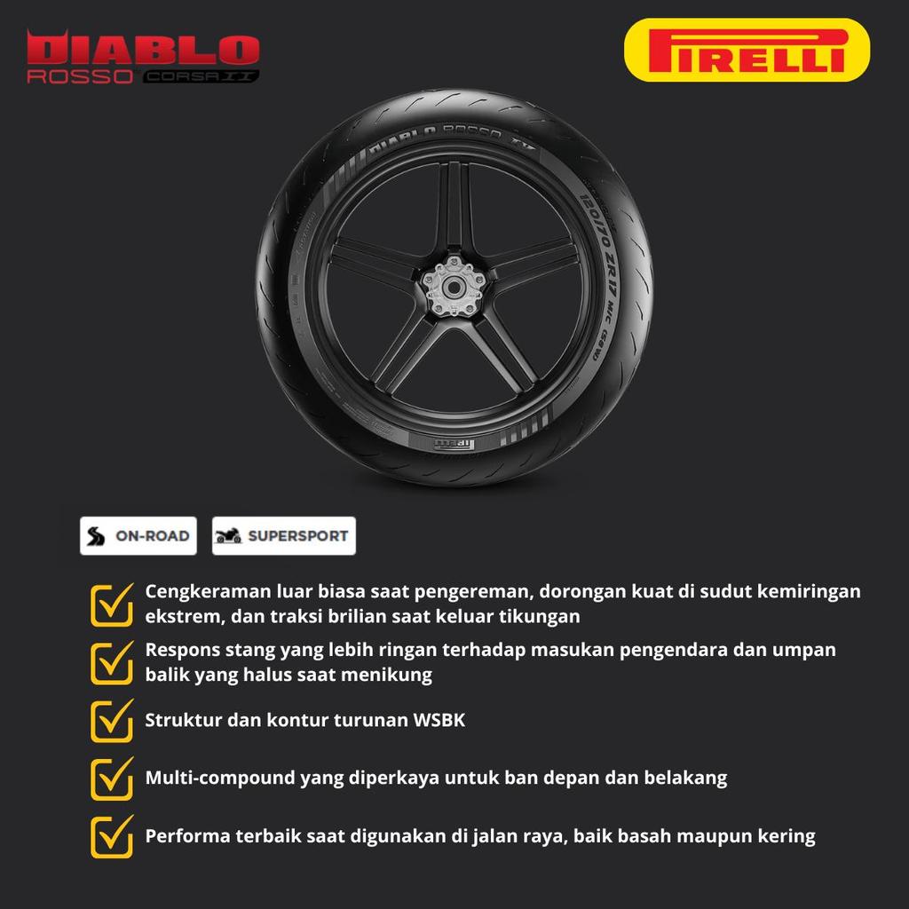 Pirelli Diablo Rosso Corsa II Ban Tubeless DRC Ring 17 90/80 - 100/80 - 110/70 Racing Soft Compound