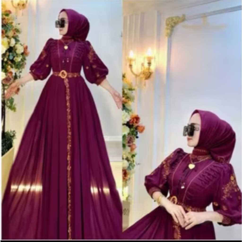 BAJU GAMIS MUSLIMAH PESTA KEKINIAN DINDA DRES BORDIR BAHAN CERUTY GAMIS MEWAH LEBARAN 2026 BESTSELER