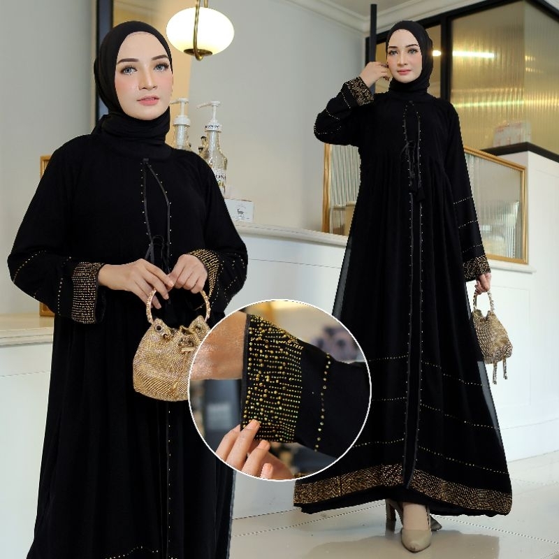 Gallery Exclusive Abaya Hitam Syari Gamis Bordir Turkey Haura Black Swarosvky ( geser kanan untuk motif lain )