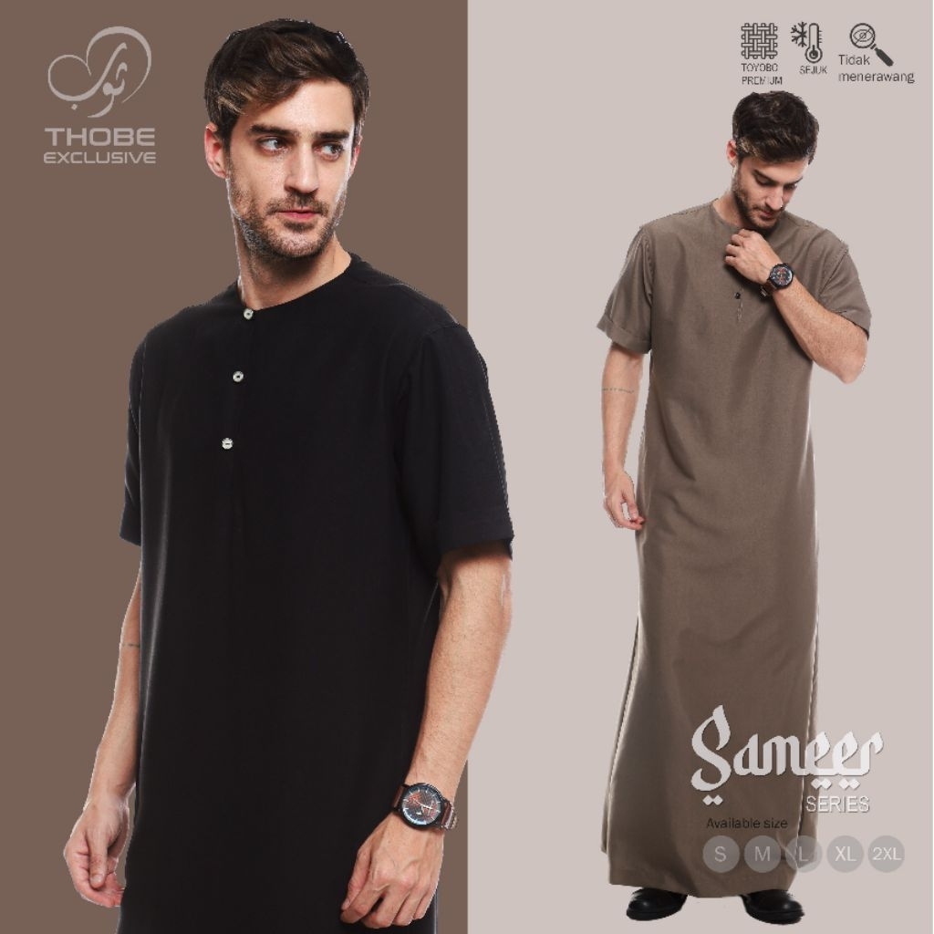 gamis jubah pria Sameer lengan pendek polos terbaru THOBE EXCLUSIVE premium