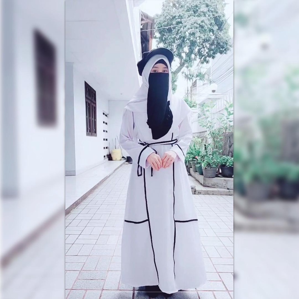 Abaya Hitam Garis Putih Syar'i Muslim Arab Modis Remaja Kekinian Terbaru JMR-HK