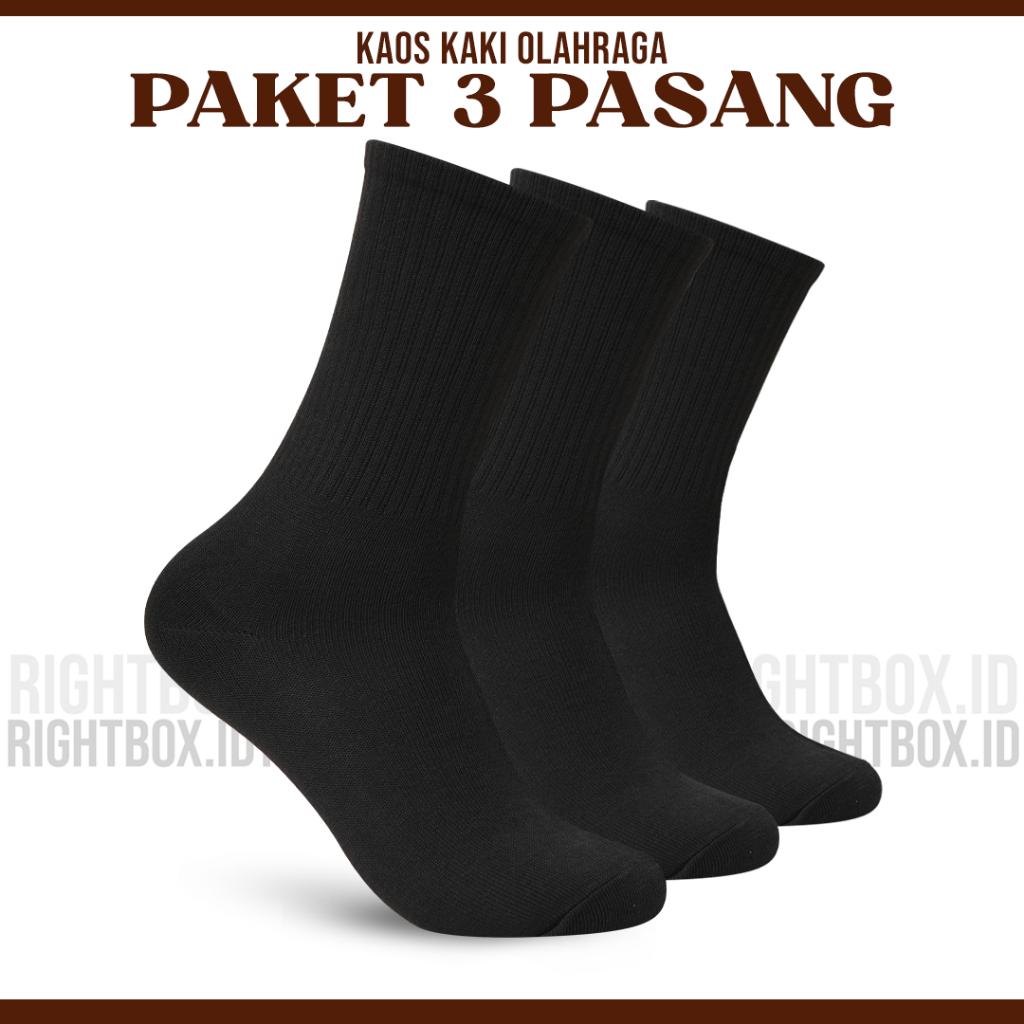 Rightbox Id, Paket 3 Pasang Kaos Kaki Olahraga, Bahan Tebal, Ukuran Dewasa