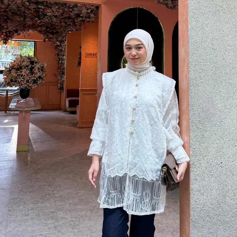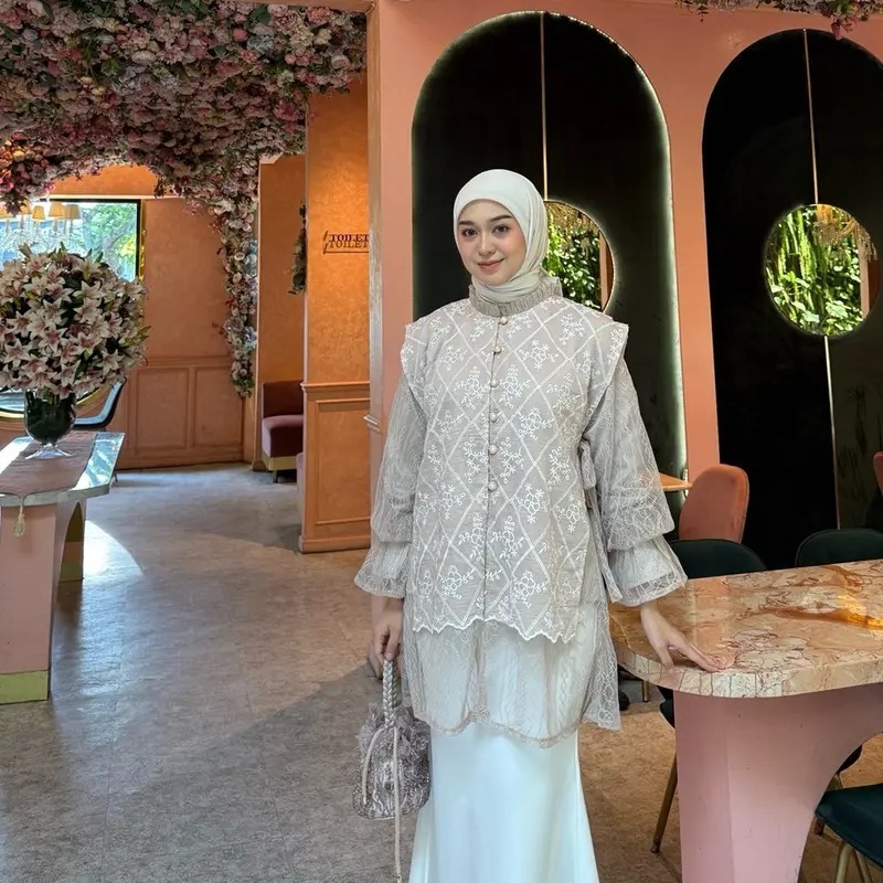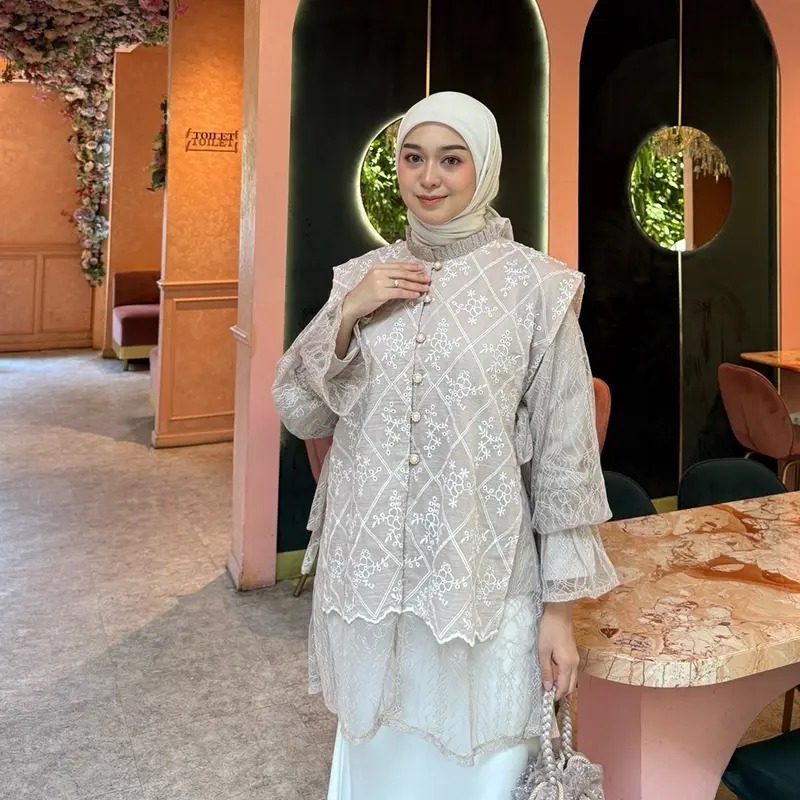 Flora blouse brokat kondangan bahan chantily mix katun bordir pesta wanita wisuda bridesmaider tunik lebaran kekinian