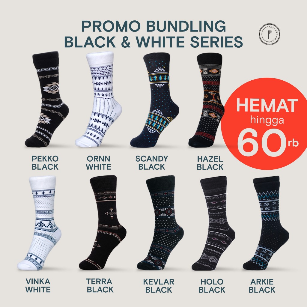 Pattent Goods - Special Bundling Black And White Series 2 & 3 Pasang Banyak Pilihan - Kaos Kaki Anti Bacterial - Kaos Ka