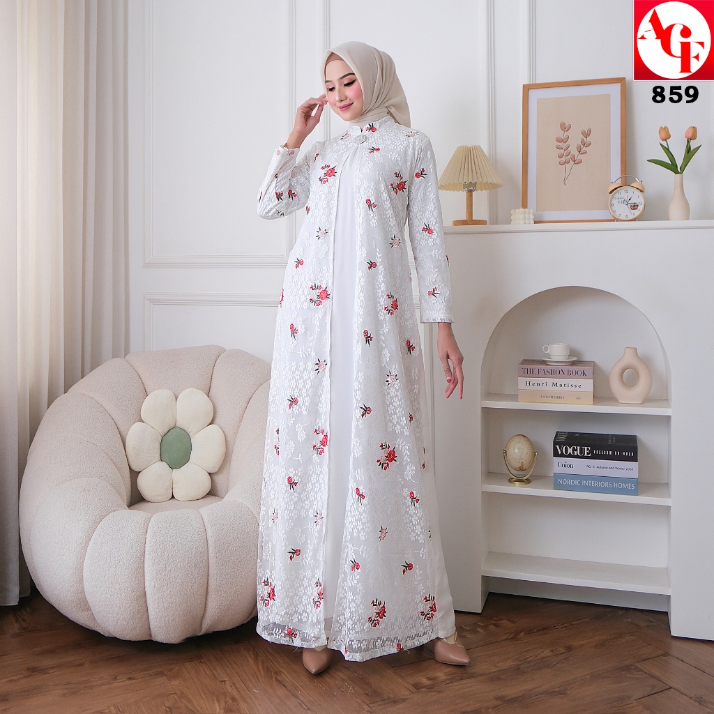 AGNES HIJAB - NAMIRA DRESS GAMIS PUTIH LEBARAN 2026 TERBARU FULL BRUKAT BORDIR BUNGA ORIGINAL BAJU MUSLIM WANITA PENGAJIAN HAJI UMROH 859