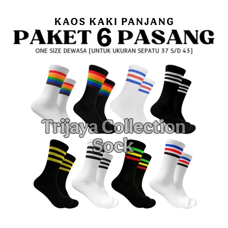 Paket 6 Pasang Kaos Kaki Oldschool Panjang Motif Garis Pria Wanita Dewasa / Kaos Kaki Olahraga Strip Sebetis Unisex