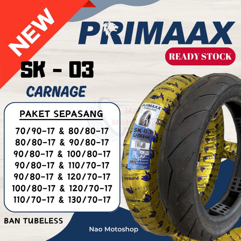 SEPASANG BAN TUBELESS MURAH PRIMAAX SK 03 CARNAGE RING 17 80/80 90/80 100/80 110/70 120/70 130/70