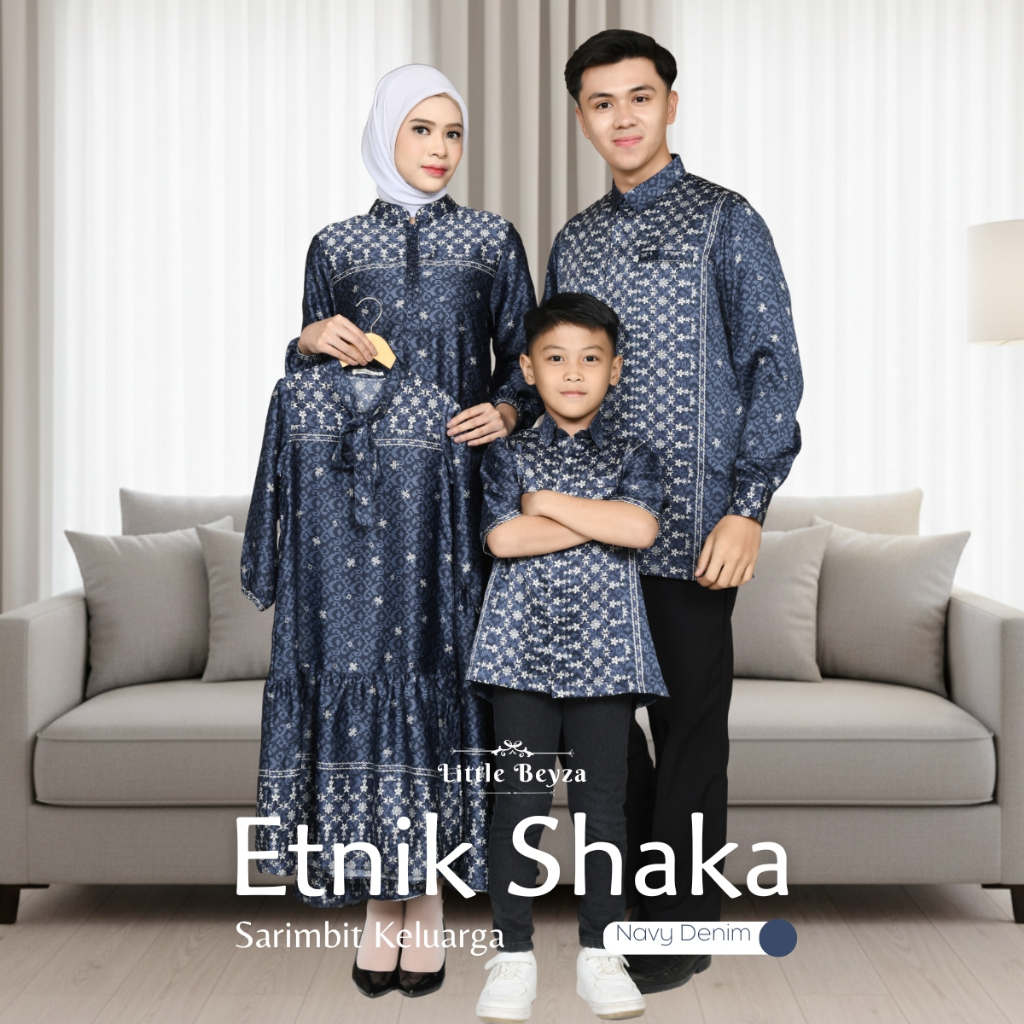 SARIMBIT KELUARGA MUSLIM NAVY DENIM TERBARU 2026/BAJU MUSLIM SERAGAM KELUARGA/COUPLE GAMIS KEMEJA