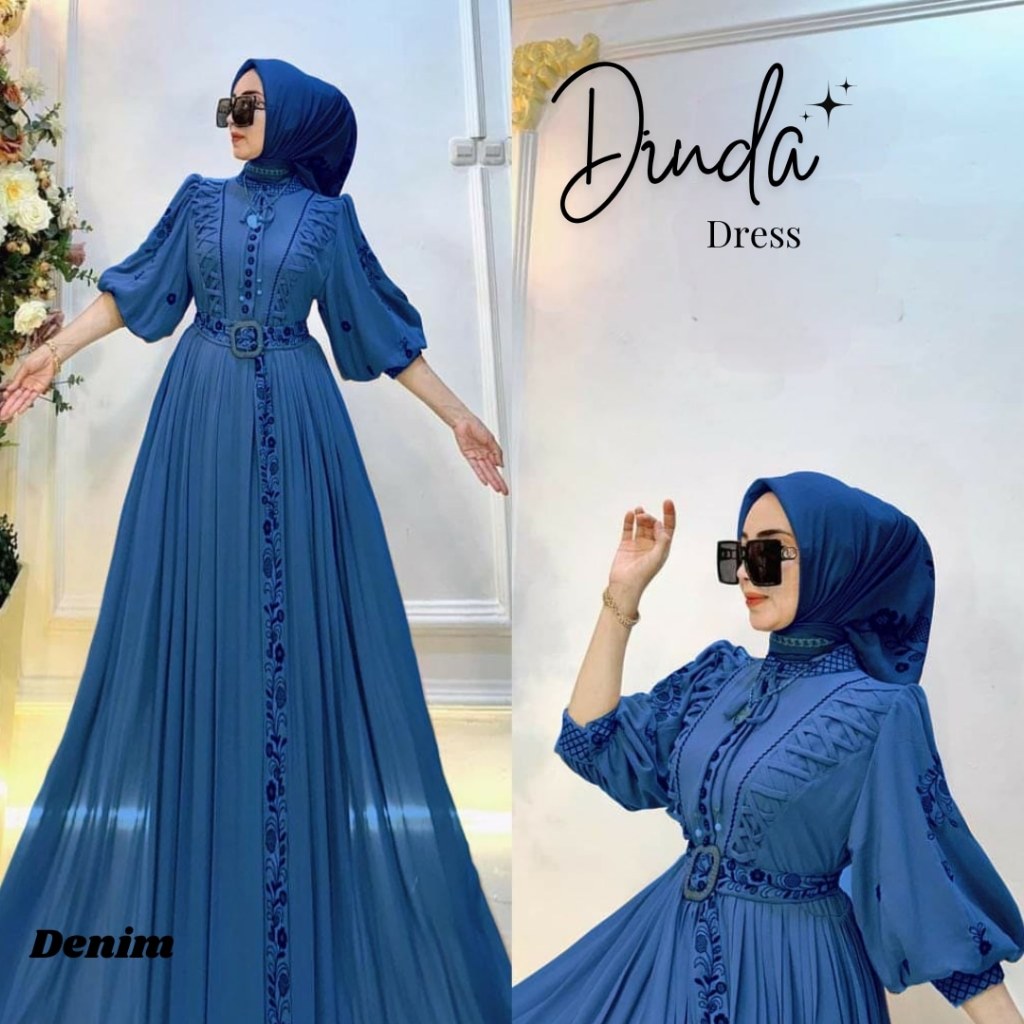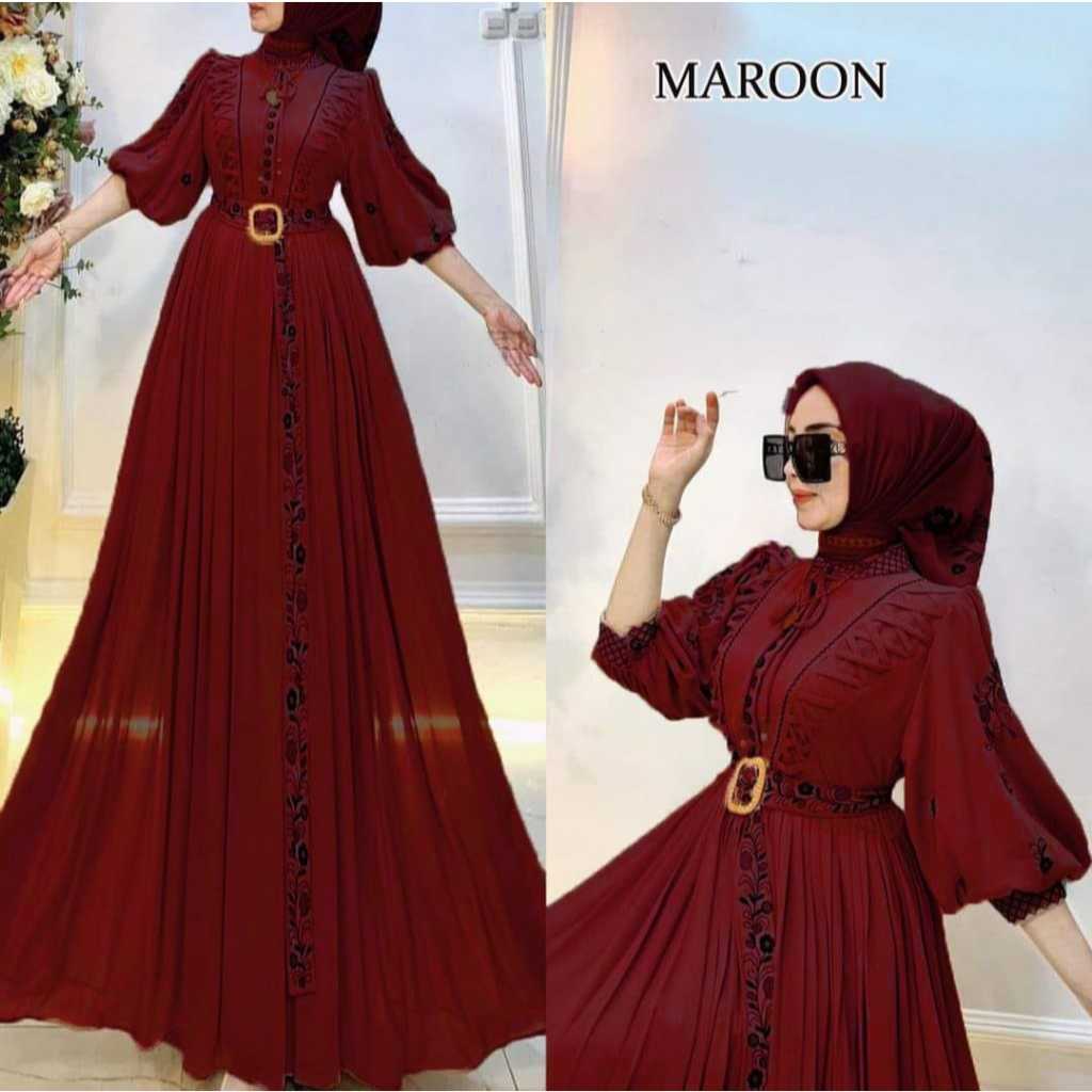 BAJU GAMIS MUSLIMAH PESTA KEKINIAN DINDA DRES BORDIR BAHAN CERUTY GAMIS MEWAH LEBARAN 2026 BESTSELER