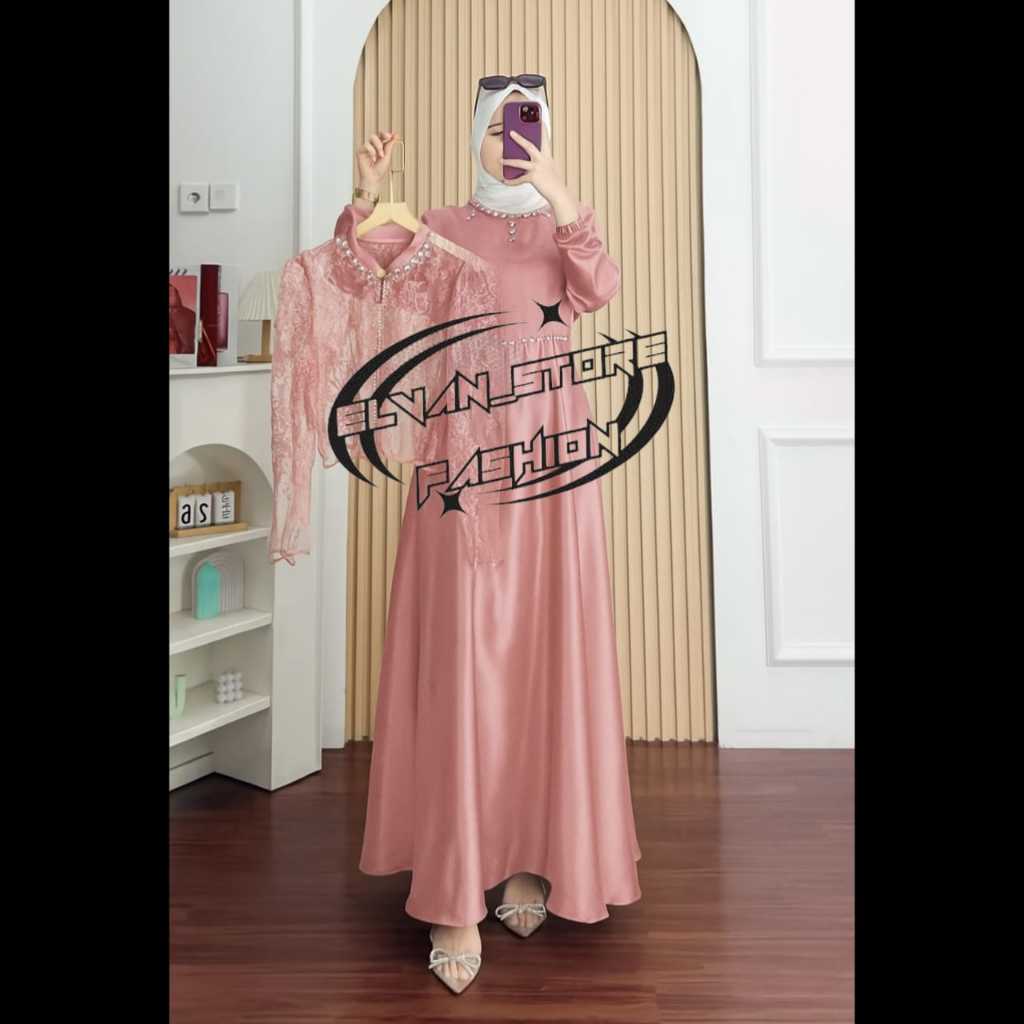 SAKURA DRESS GAMIS SLIK SET ER WARNA COKLAT MAHOGANY DRESS LEBARAN 2026 KONDANGAN WANITA MUSLIM