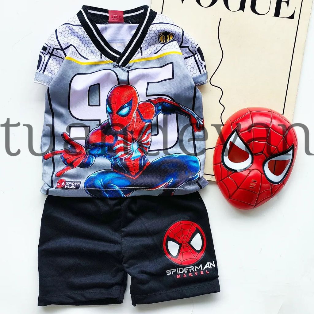 Baju Jersey Spiderman Premium Anak Laki Laki Murah Bahan Bagus Setelan Super Hero Keren Bisa Pakai Topi Untuk Umur 1-10