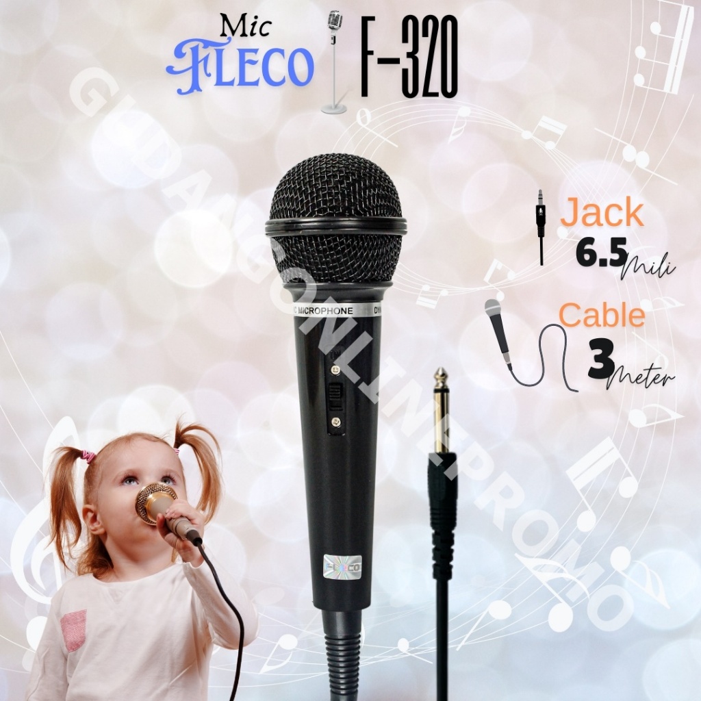Microphone Mic Professional Kabel Fleco F-320 Kabel Panjang 3 Meter dan Tebal Vokal Karaoke jeck besar 6.5m