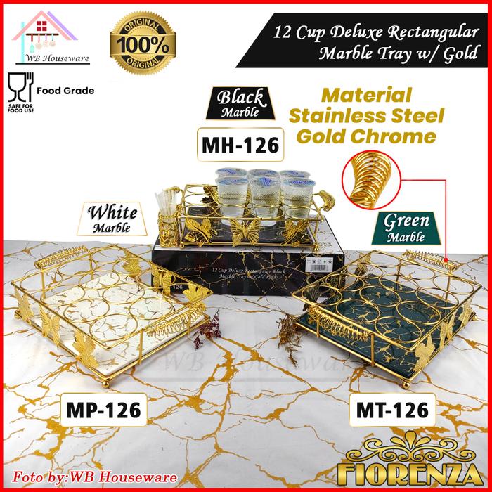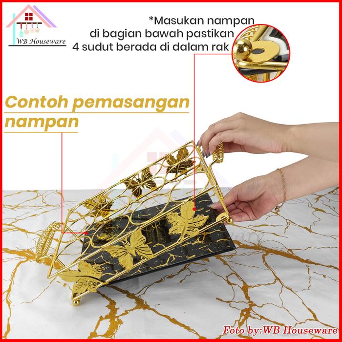 FIORENZA Rak aqua segi 12 lubang stainless gold / wadah gelas 12cup + tempat sedotan + tatakan