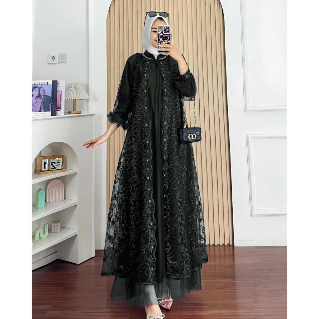 NADINE DRESS GAMIS LEBARAN MEWAH TERBARU IMPORT KEKINIAN 2026 BAHAN TILLE MIX BRUKAT APLIKASI ET