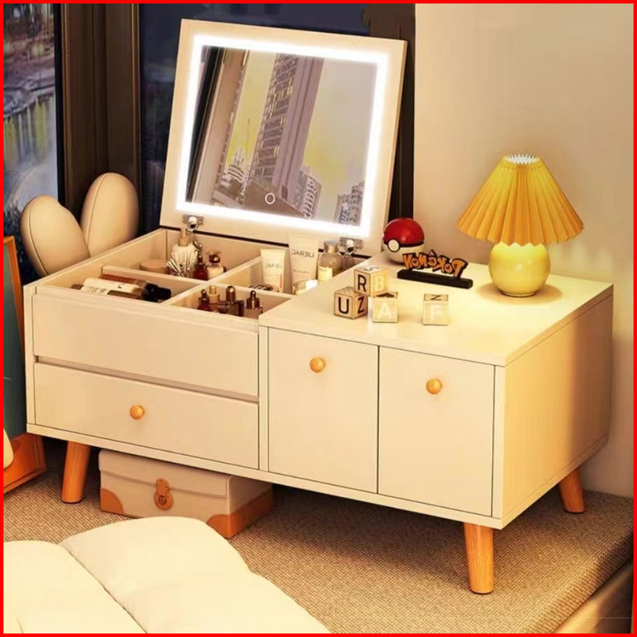 Highline Meja Rias Lampu Led Meja Rias Rak Kosmetik Meja Rias Aesthetic Mini Modern Meja Kosmetik