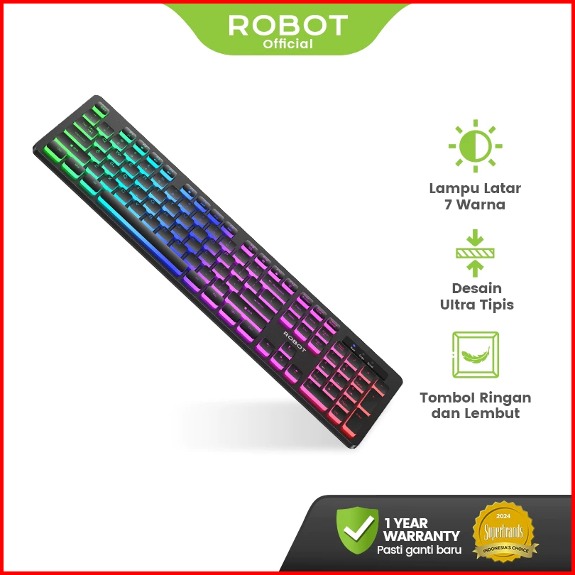 Robot Keyboard Kabel Backlit 7 Warna Ultra Tipis Rgb Keyboard Kantor Senyap Ergonomis Rk40 - Garansi 1 Tahun
