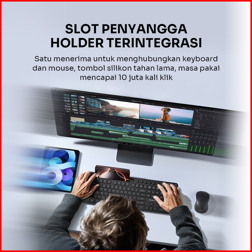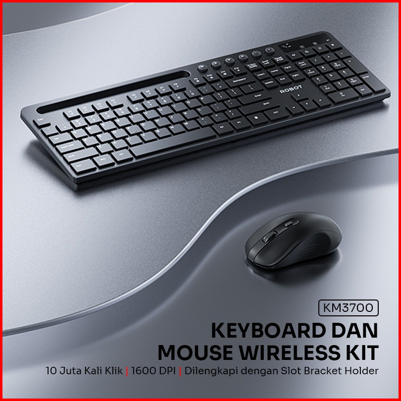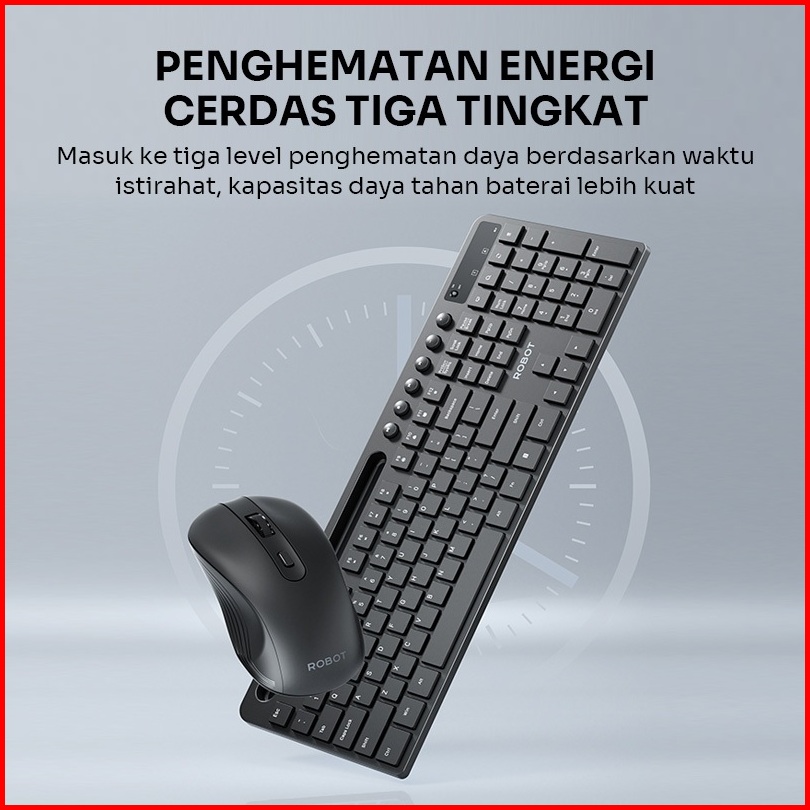 Robot Keyboard Mouse Wireless Combo Multi-device Dilengkapi Holder Hp Silent Typing Hemat Baterai Android Ios Mac Window