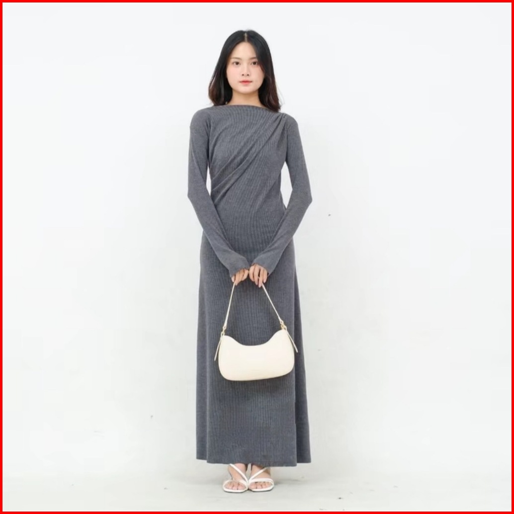 Ruby Long Dress Knit Wanita Dres Bodycon Kekinian Elegan Korean Style Dress Pressbody Korean Look