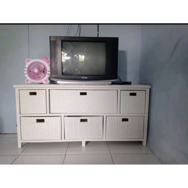 (Ready Stok) Lemari Rotan Sintetis 6 Laci Lemari Plastik Rak Buku Susun Meja Tv Minimalis Rotan Murah