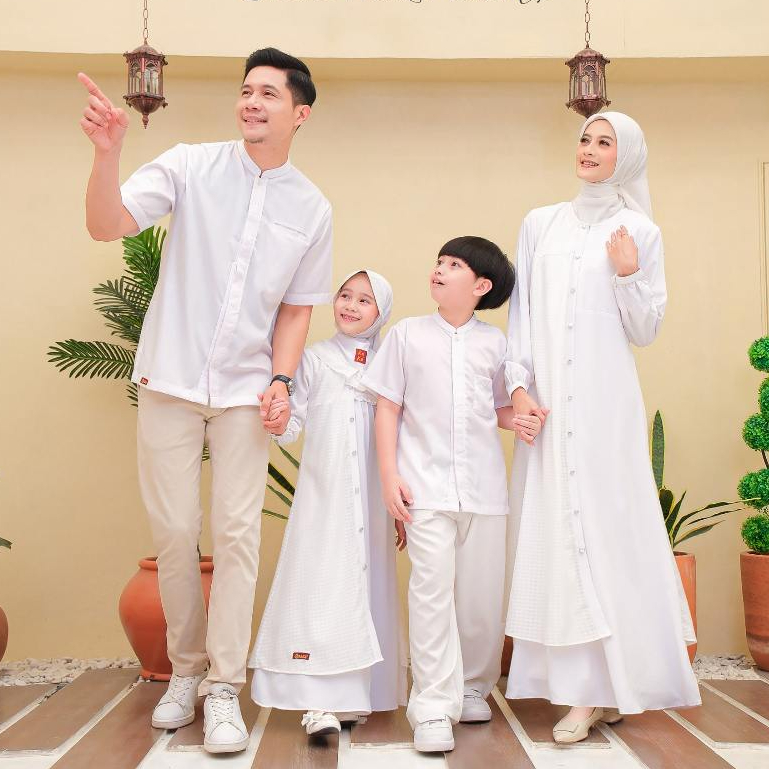 Keke Busana | Baju Sarimbit Lebaran Terbaru 2026 Gamis Abaya Koko - Arabella Broken White