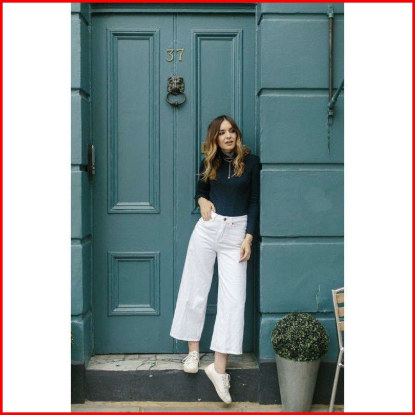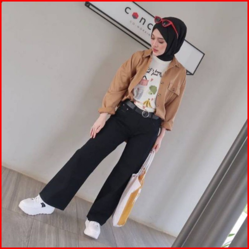 Kulot Jeans Highwaist Wanita Celana Bawahan Jeans Hitam Mocca Putih Snow