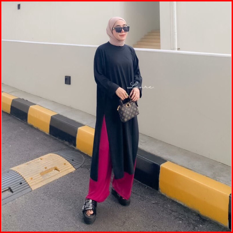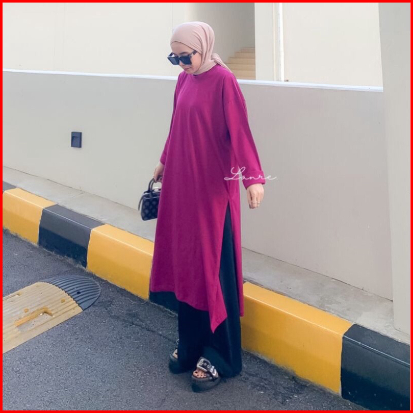 Nuna Tunik High Slit Untuk Busui Dan Nonbusui Midi Dress Jumbo Bahan Kaos Atasan Warna Hitam