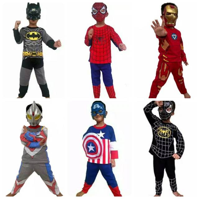Kostum Baju Anak Superhero Topeng Spiderman Captain America Ironman Venom Ultraman