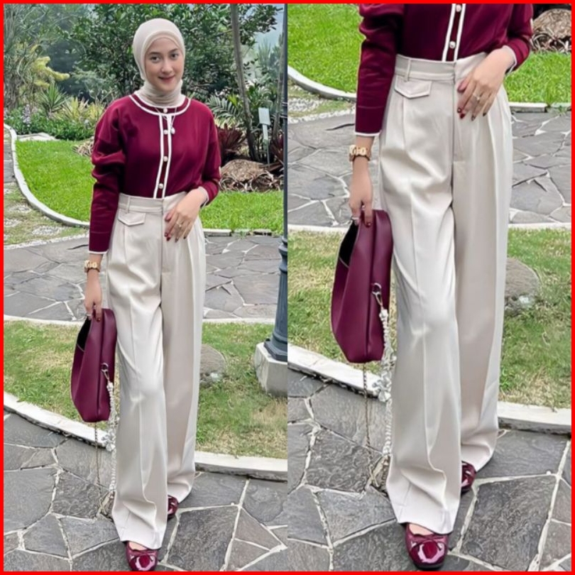 Oro Pants Top Qc Loose Pants Trousers Wanita Jumbo Highwaist Celana Kulot Wanita Jumbo Anti Kusut