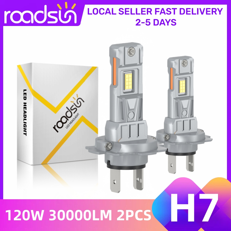 Bohlam lampu depan LED Roadsun H7 2 buah, 120W 30000LM 6000K CSP, cocok untuk lampu depan mobil dan motor. Lampu depan o