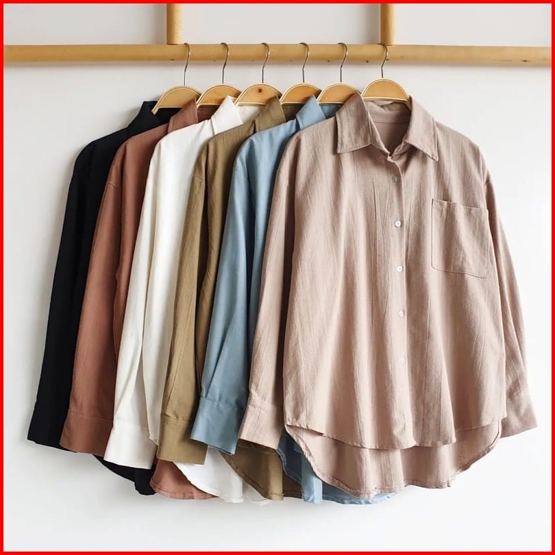 Kemeja Linen Oversize Oversize Shirt Linen Olivia Shirt Kemeja Basic Wanita Kemeja Wanita Oversize