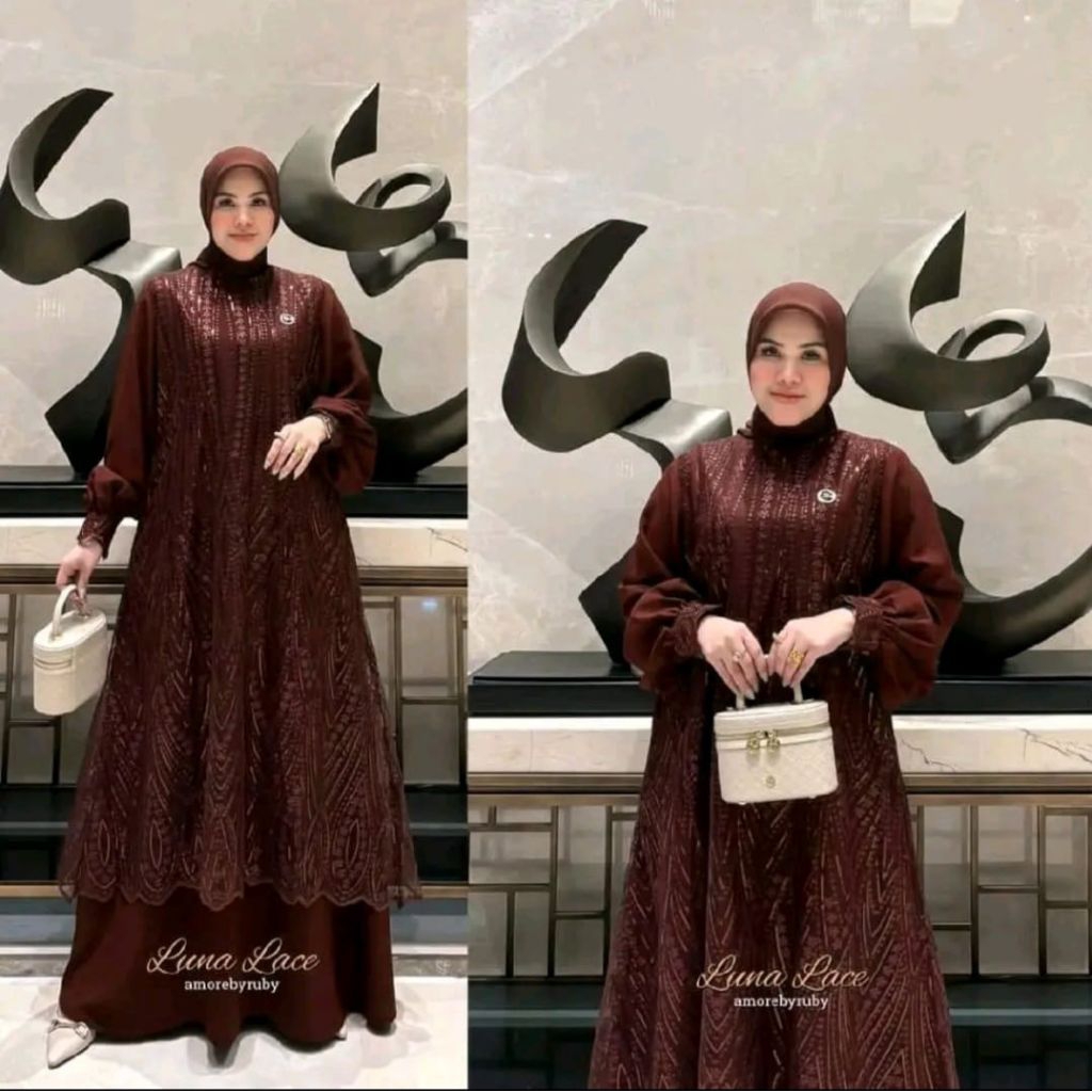 LUNA LACE DRESS GAMIS SILK MIX BRUKAT SPANGLE DRESS WANITA MEWAH ELEGAN GAMIS TERBARU LEBARAN 2026