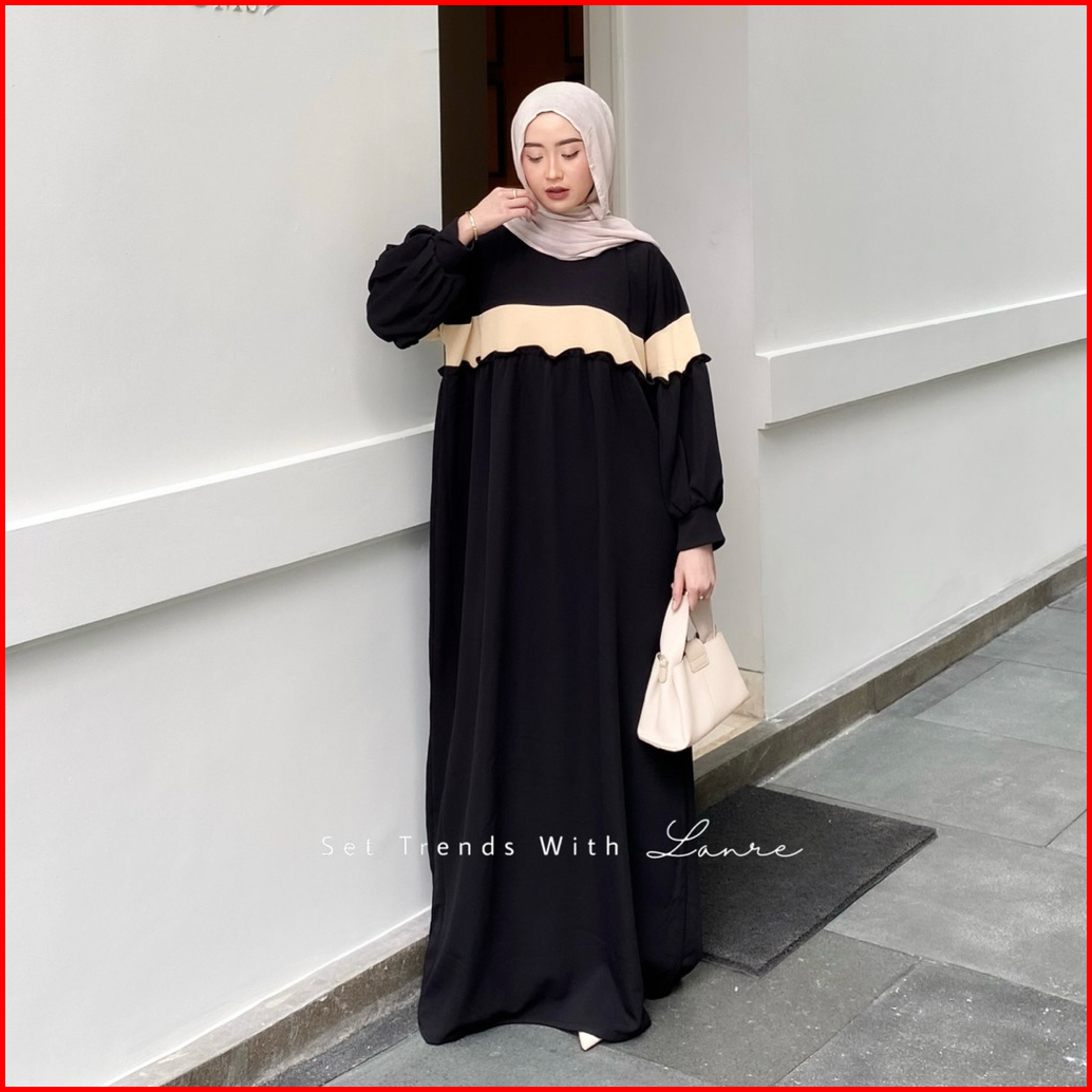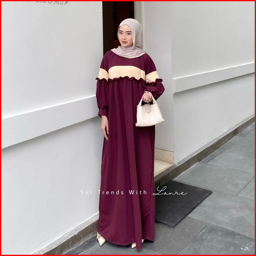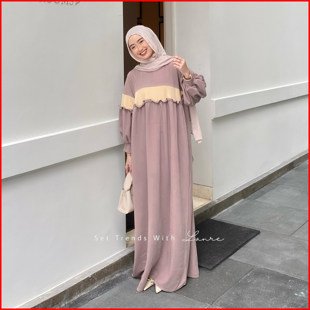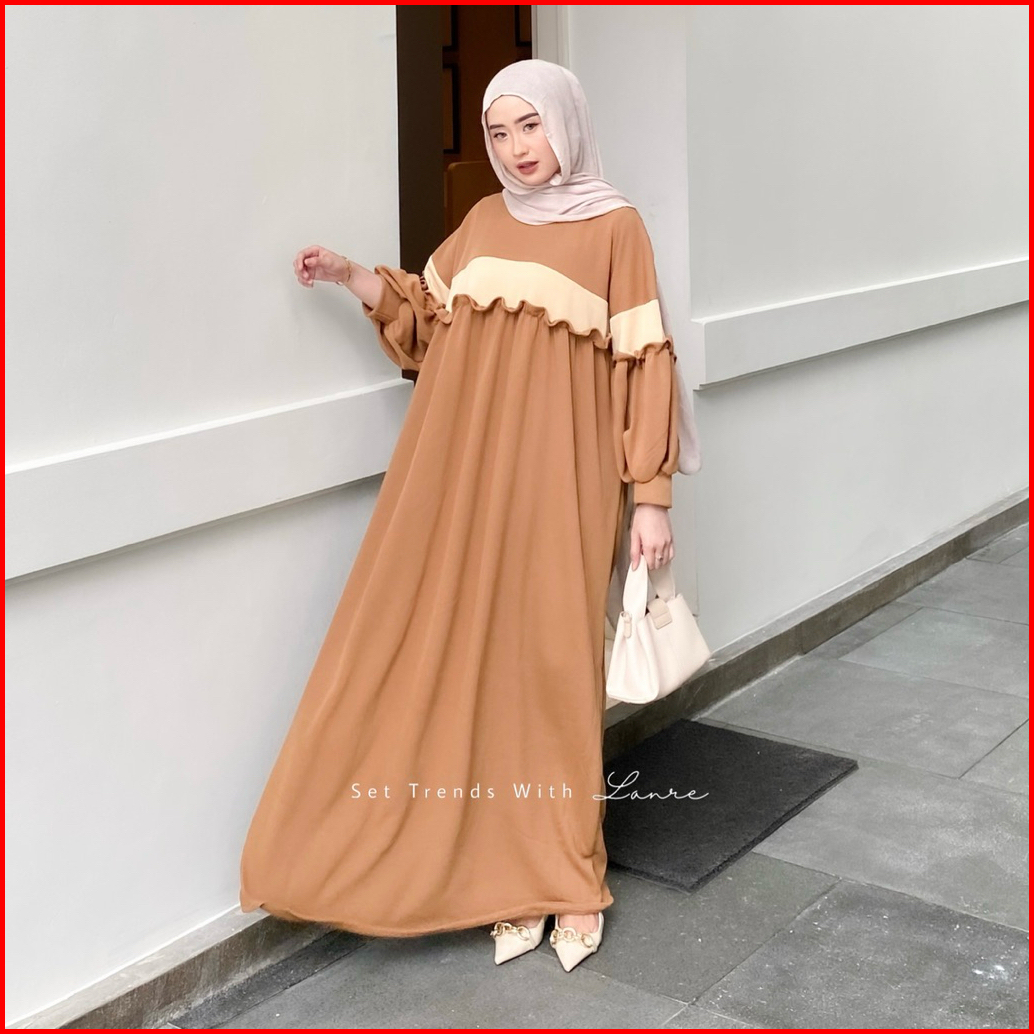 Kara Dress Rempel Bahan Knit By Lanre Gamis Jumbo Lengan Balon