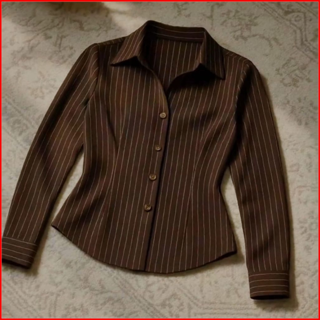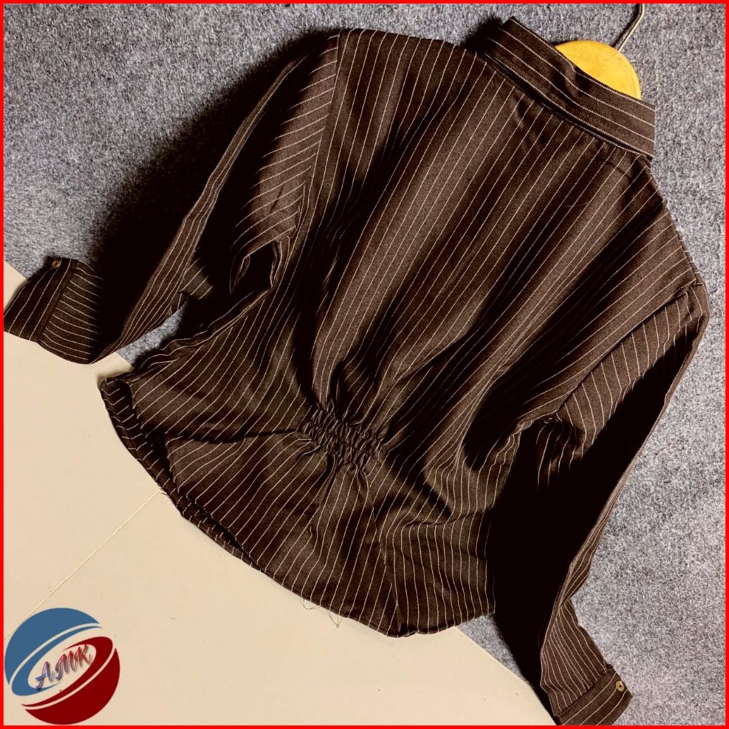 Luna Stripe Kemeja Atasan Wanita Fitted Blouse Wanita Salur Garis-garis Lengan Panjang Kekinian
