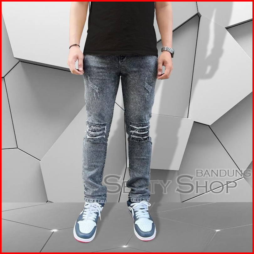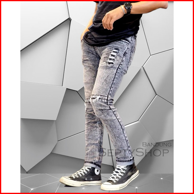 Celana Jeasn Pria Rgs411 Snow Abu Grey Sandwash Sobek Ripped Slimfit