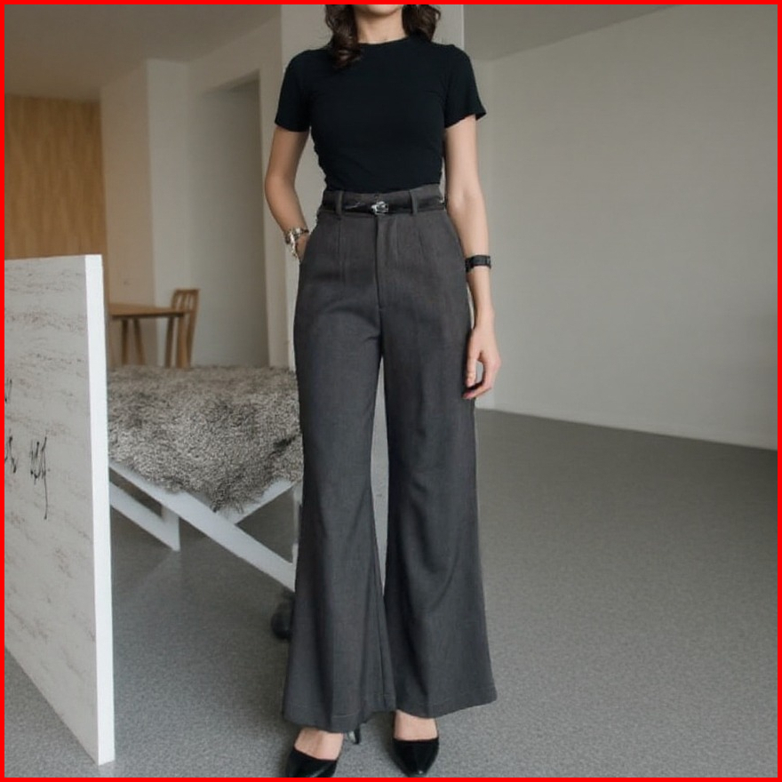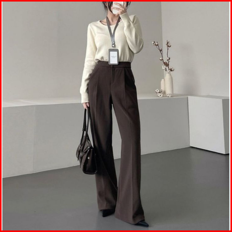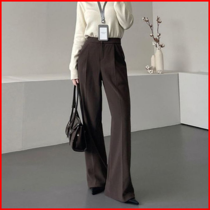 Wide Leg Loose Pants Trousers Wanita Celana Kulot Semi Flare Loose Wanita Jumbo Celana Kerja Wanita
