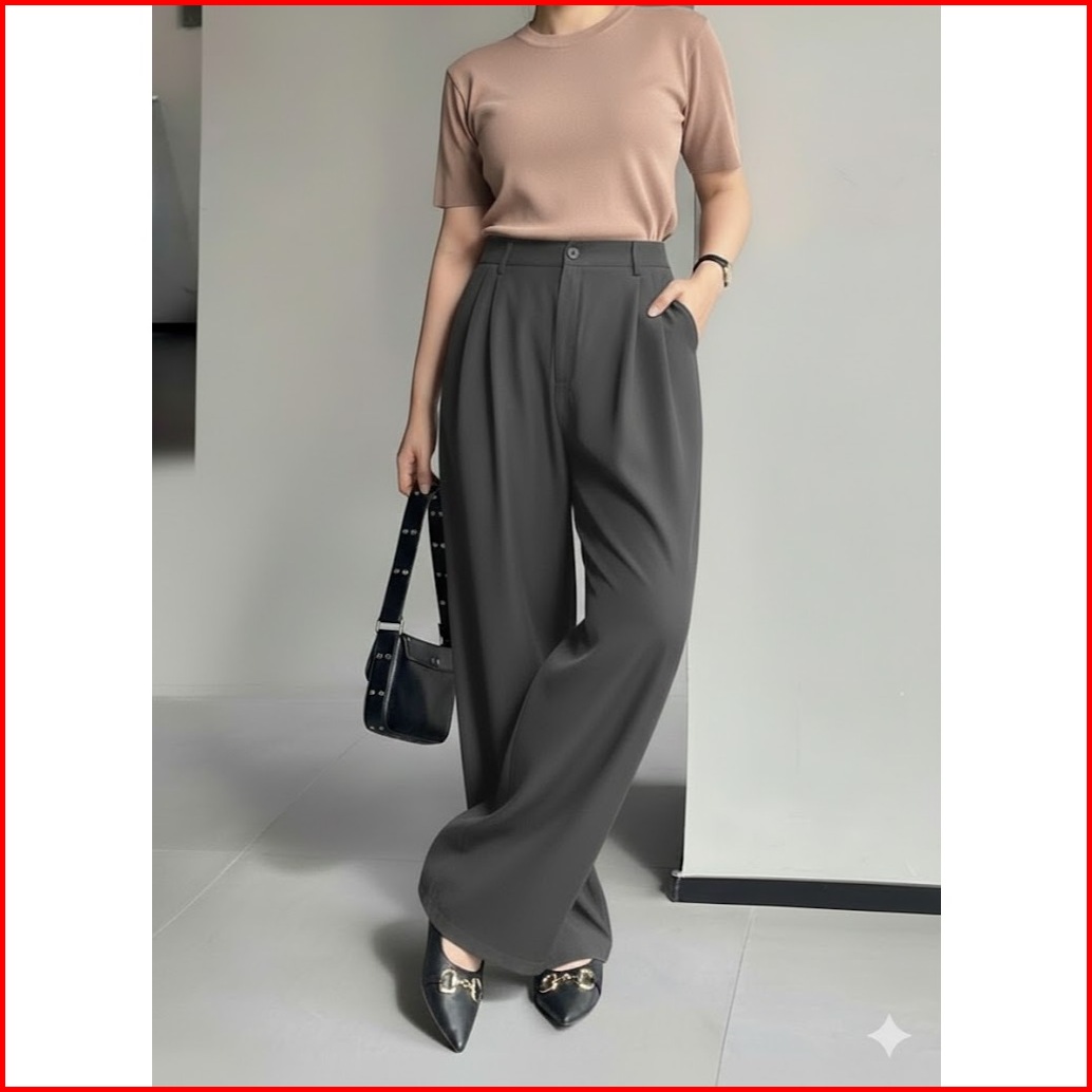 Brokenhomess - Viona Loose Pants Trousers Wanita Jumbo Celana Kulot Highwaist Bahan Semiwoll Elegan