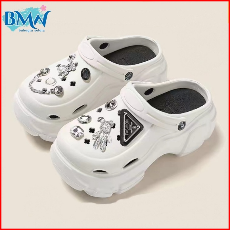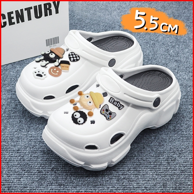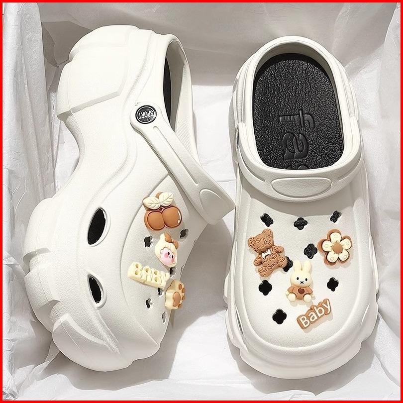 Sandal Wanita Elegan 2025 Baru Baotou Sandal Pantai Anti Selip Eva Sol Tebal 5cm Sandal Jeli Karet