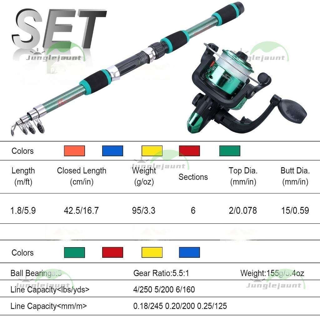 1.8M Spinning Joran Pancing Set 5.2:1 Reel Pancing 5 Warna Tersesuai Untuk Memancing Tanah