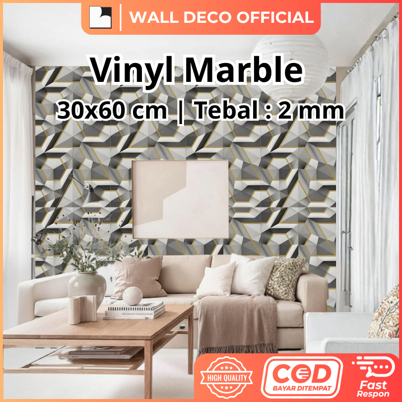Wallpaper Dinding Vinyl Marble Granit 30 x 60 cm Isi 20 Pcs Stiker Keramik Glossy Tahan Air