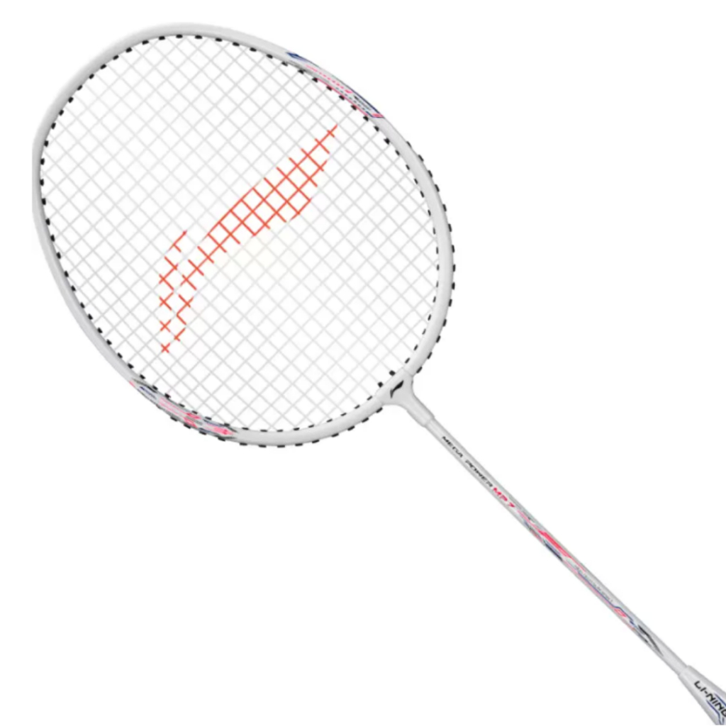 [Star]Li-Ning Badminton Racket Mega Power MP 7 AYPU159-1 Pearl White Bundle Cover (Sudah Terpasang Senar) Berkualitas