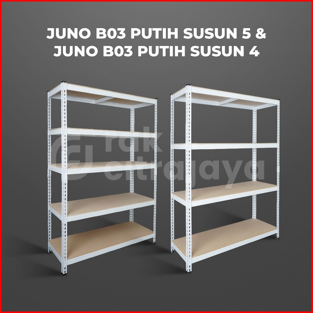 Boltless Rak Besi Gudang Siku Lubang Serbaguna Tidak Perlu Baut Heavy Duty Putih
