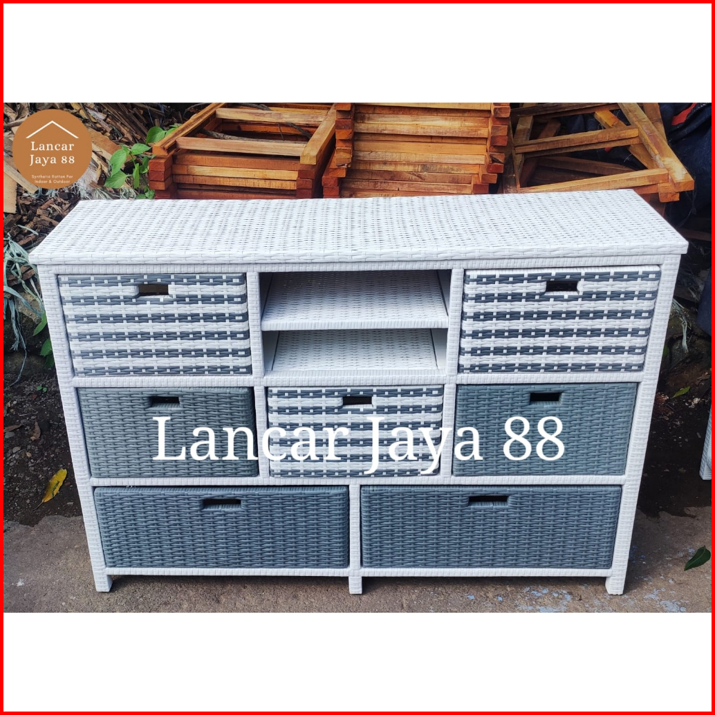 Lemari Plastik Susun 7 Rotan Sintetis Anti Rayap
