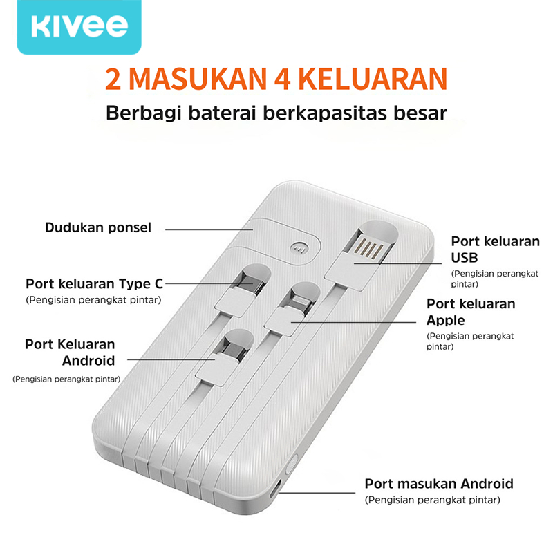(HOT)KIVEE Powerbank 20000 mAh Fast Charging Murah Mini LCD with Kabel Data Garansi 1 tahun