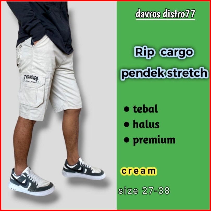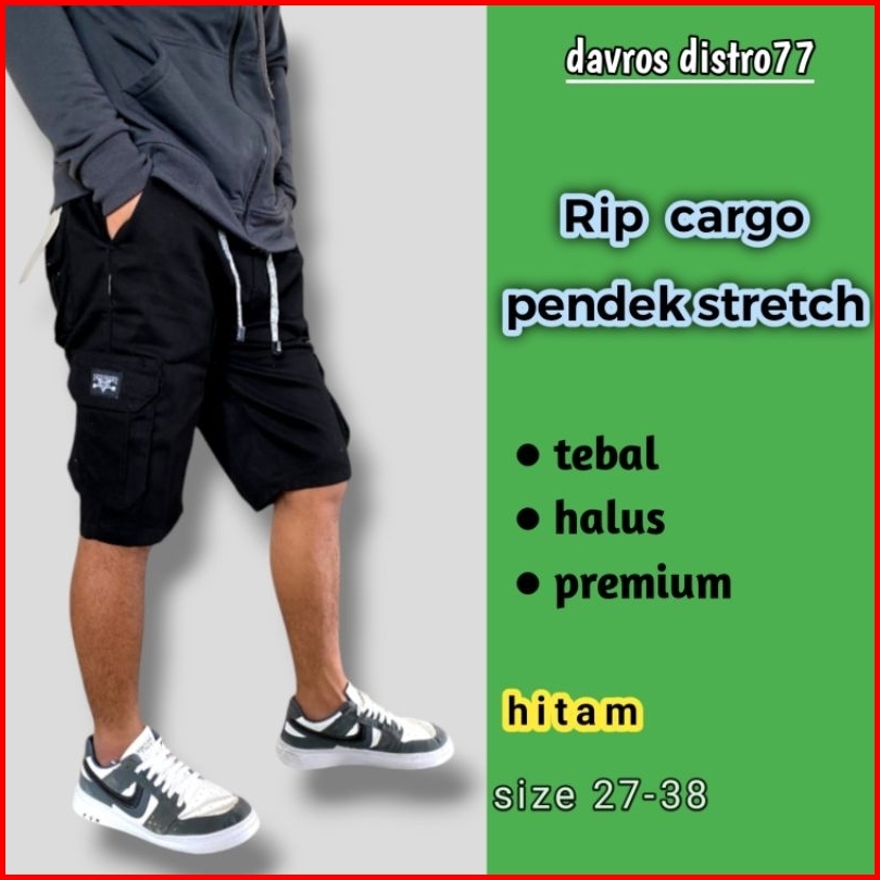Celana Cargo Pendek Pinggang Karet Stretch Pria